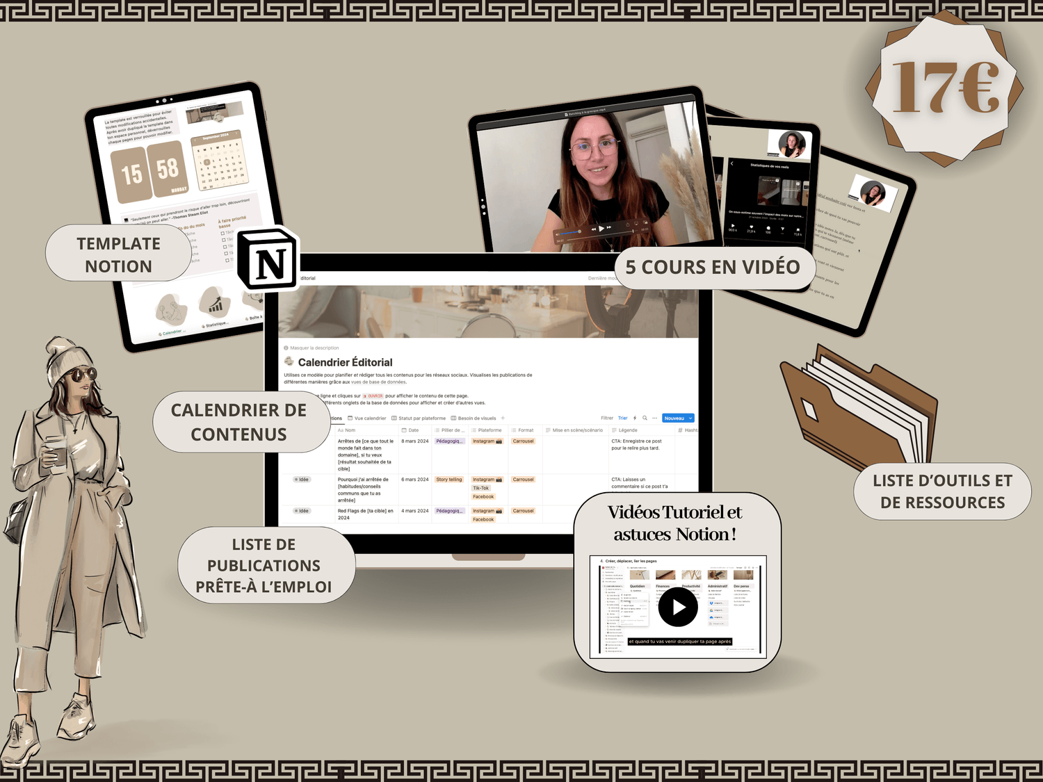 Tu accèdes à un espace Notion entièrement pensé pour la création de contenus ainsi que ma méthode d'organisation en 5 étapes.